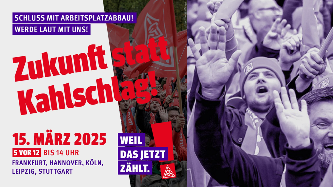 On Saturday, 15 March, workers across Germany will take to the streets of Hannover, Stuttgart, Cologne, Frankfurt and Leipzig for a national demonstration organised by IG Metall.