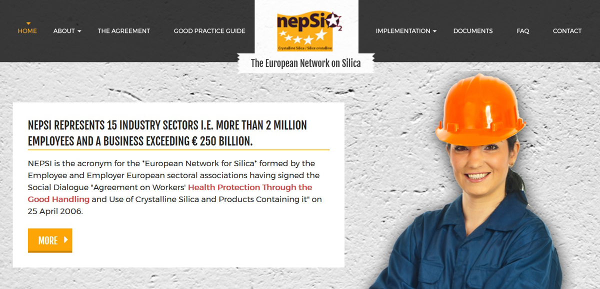 The NEPSI Social Dialogue Agreement was signed ten years ago by a diverse group of industries and the unions representing their workforce [see list of signatories below]. Together, the signatories formed NEPSI, the European Network on Silica, to implement effective protection measures through good practices and closely monitor the application of the Agreement through bi-annual reports of key performance indicators. This is the first European multi-sectoral agreement.