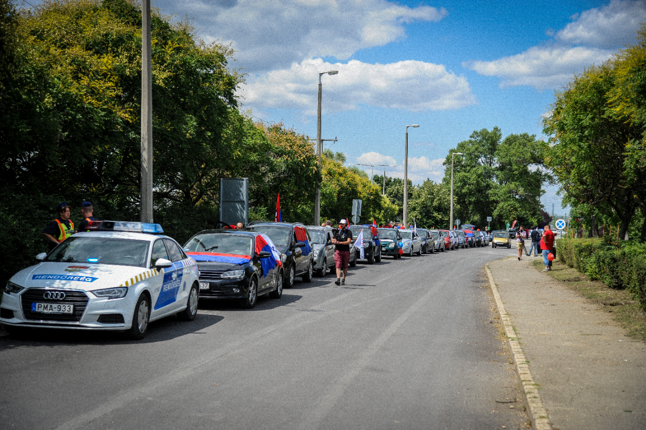 Metalworkers’ union VASAS, which is organising Suzuki workers, were joined at last week’s demonstration outside the plant by other members of the Hungarian Trade Union Confederation and industriAll Europe.