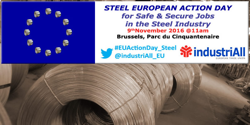 IndustriAll Europe is of the opinion that the steel industry must play a part in the general revival of the European manufacturing industry and be a key element in terms of meeting Europe's objectives for a sustainable, resource-efficient low-carbon economy. In order to make our voice heard by the EU decision-makers, industriAll Europe will be mobilising thousands of steel workers in Brussels on 9th November under the banner 'No Europe Without Steel'. "We will march through Brussels to demand a future for their industrial sites, their jobs, their families and their communities. IndustriAll Europe can no longer accept the deterioration of working conditions as a consequence of unfair trade practices. The EU was able to save the bankers. There is no reason why it shouldn't also be capable of saving the steelworkers! Action is needed and we need it, NOW!" declared Luc Triangle, General Secretary of industriAll Europe